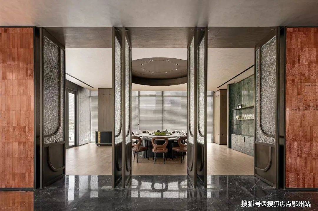 “3”:极简审美风格的立面,使用巴西灰钻石材(首次亮相南通)、香槟金及仿铜铝板、搭配全落地中空 LOW-E 玻璃等,上等材料加拼接工艺,使得整个外立面成本比常规别墅外立面要高约3倍