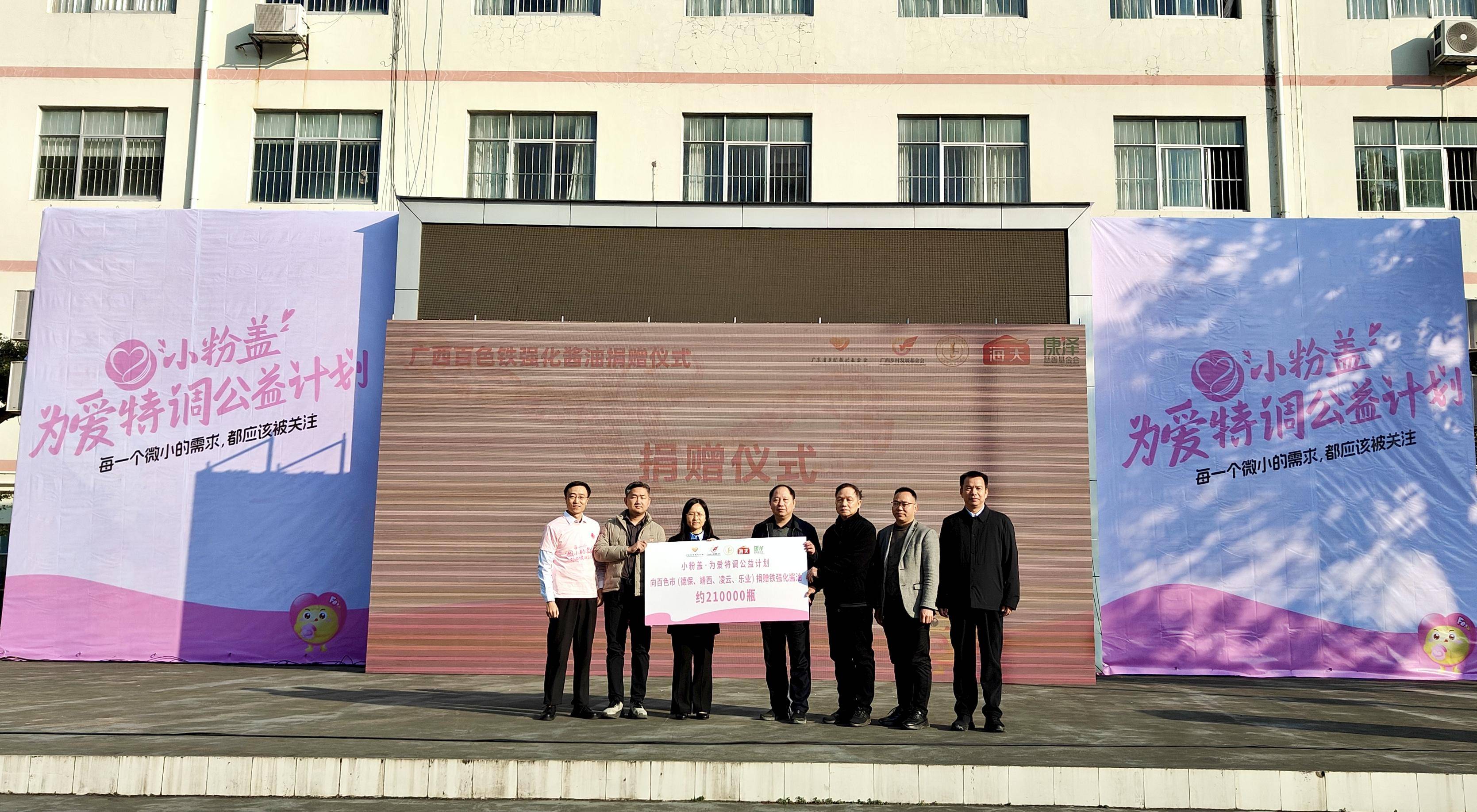 2025年,基于国家有关部门的评估与支持,海天味业与康泽基金会决定进一步在百色市扩大项目覆盖面,让更多学生获得科学补铁支持。在当天的捐赠仪式上,广东省乡村振兴基金会、海天味业、康泽基金会的代表,将象征爱心的捐赠牌,递交给广西乡村发展基金会、百色市教育基金会及学校代表手中。这条清晰的责任链条,确保了每一瓶“小粉盖”产品都能精准送达学校食堂。