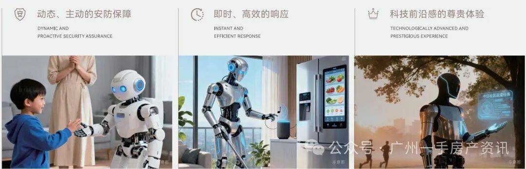AI赋能的各种智能机器人深度融合进香江1号的生活体系中,可以提供动态、主动的安防保障,即时、高效的响应,科技前沿感的尊贵体验。