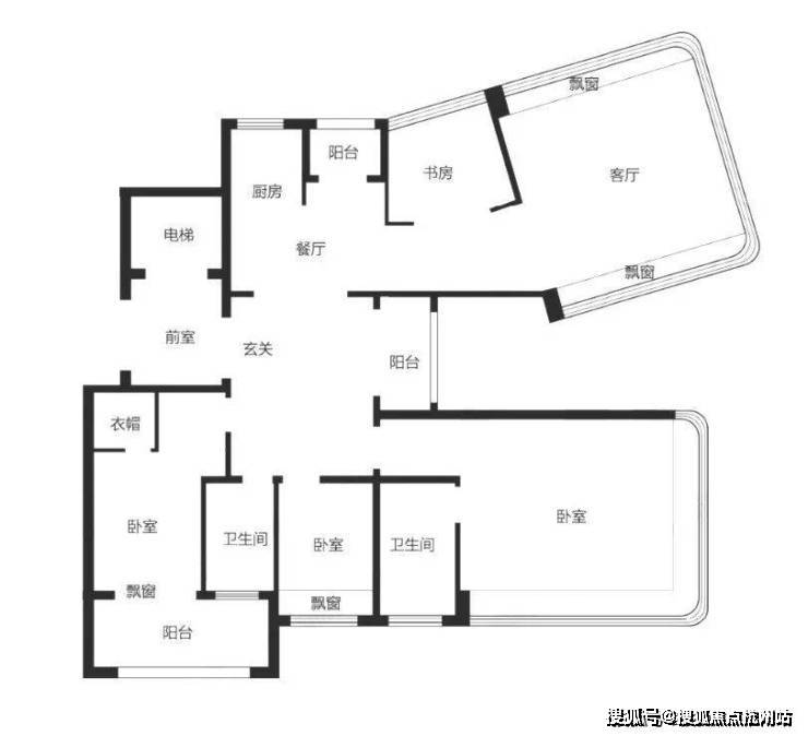 户型配备多处飘窗和阳台,飘窗可引入柔和光线,阳台则增强了采光面与通风效果,让室内空间更显明亮、舒适。