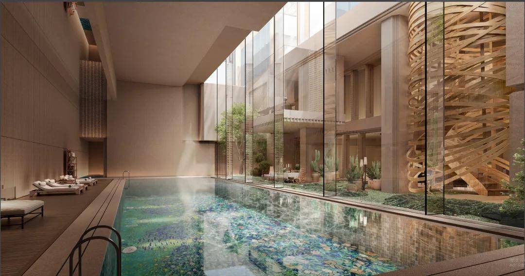 1800㎡顶奢会所,恒温泳池、健身瑜伽、私宴茶室、酒吧会客等功能一应俱全。