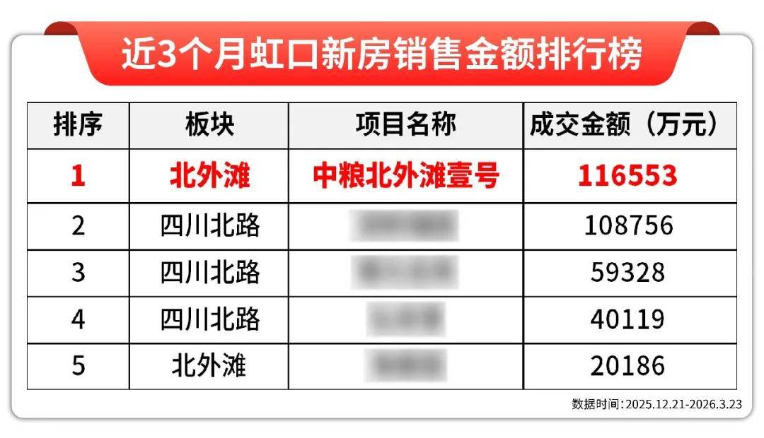 透过网签数据我们也能看到,中粮北外滩壹号揽金11.7亿拿下近3个月虹口区