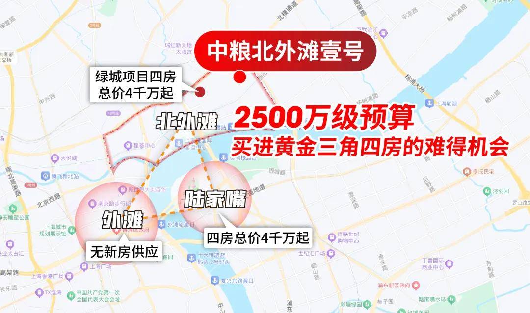 年没有新房供应了,陆家嘴的太古源四房起步4千万,按这个逻辑绿城北外滩项目四房看齐4千万也在情理之中。但中粮北外滩壹号的出现,打破了这一既定格局,俨然是