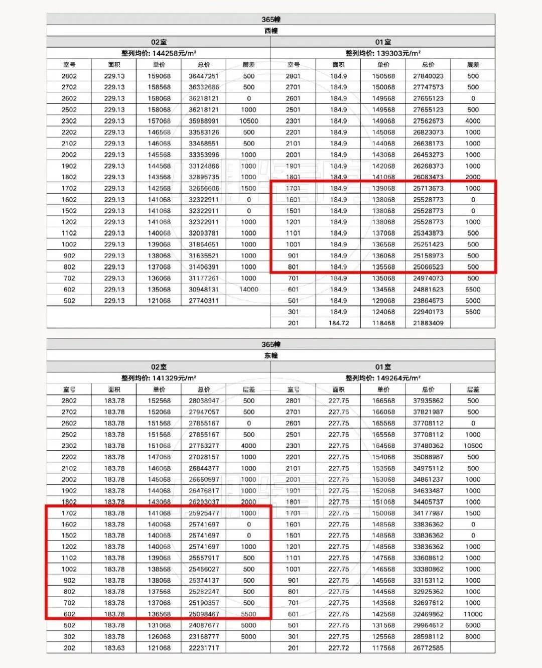 注意看价格表,2500万是项目建面约185㎡的主力价格段,买的都是中间楼层,并非低区。228㎡户
