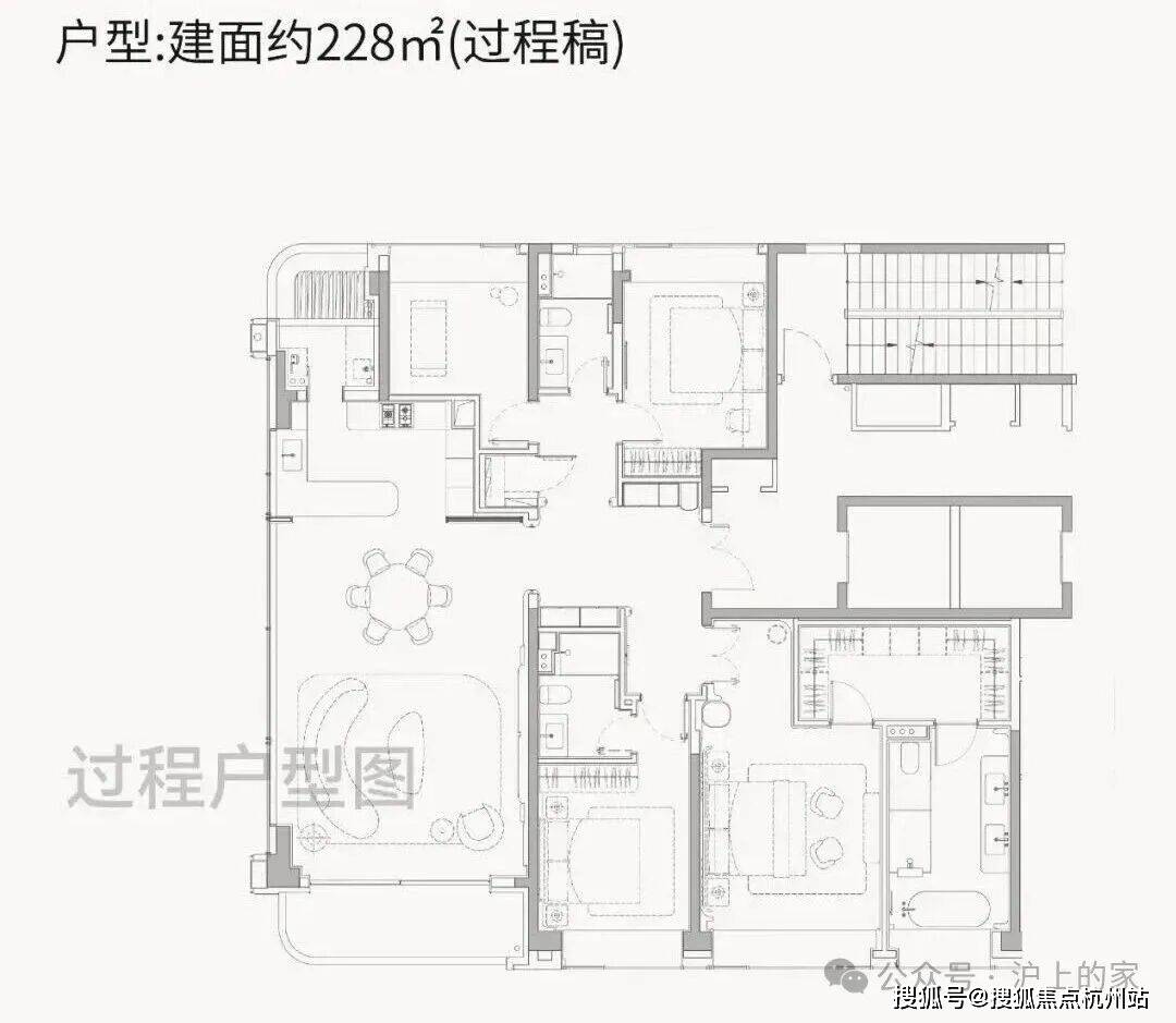约228㎡4房天际大宅:尊崇感、隐私性拉满的二胎家庭改善居住动静分区户型,三代同堂家庭居住也是极度舒适。