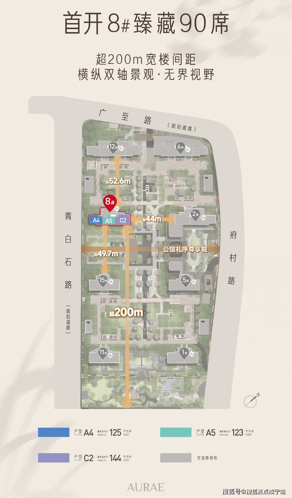 共同构成项目的空间骨架,这种尺度的轴线规划在土地资源紧张的上海城央住宅项目中确实少见。