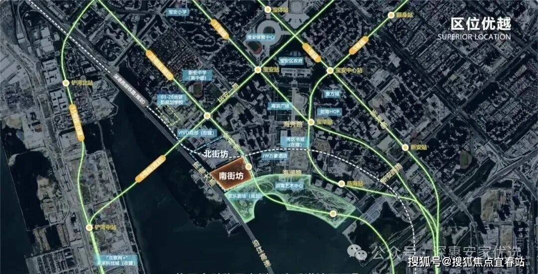 地块西南侧便是广深沿江高速,以及欢乐港湾、深圳书城湾区城、宝安青少年宫等地标性建筑。