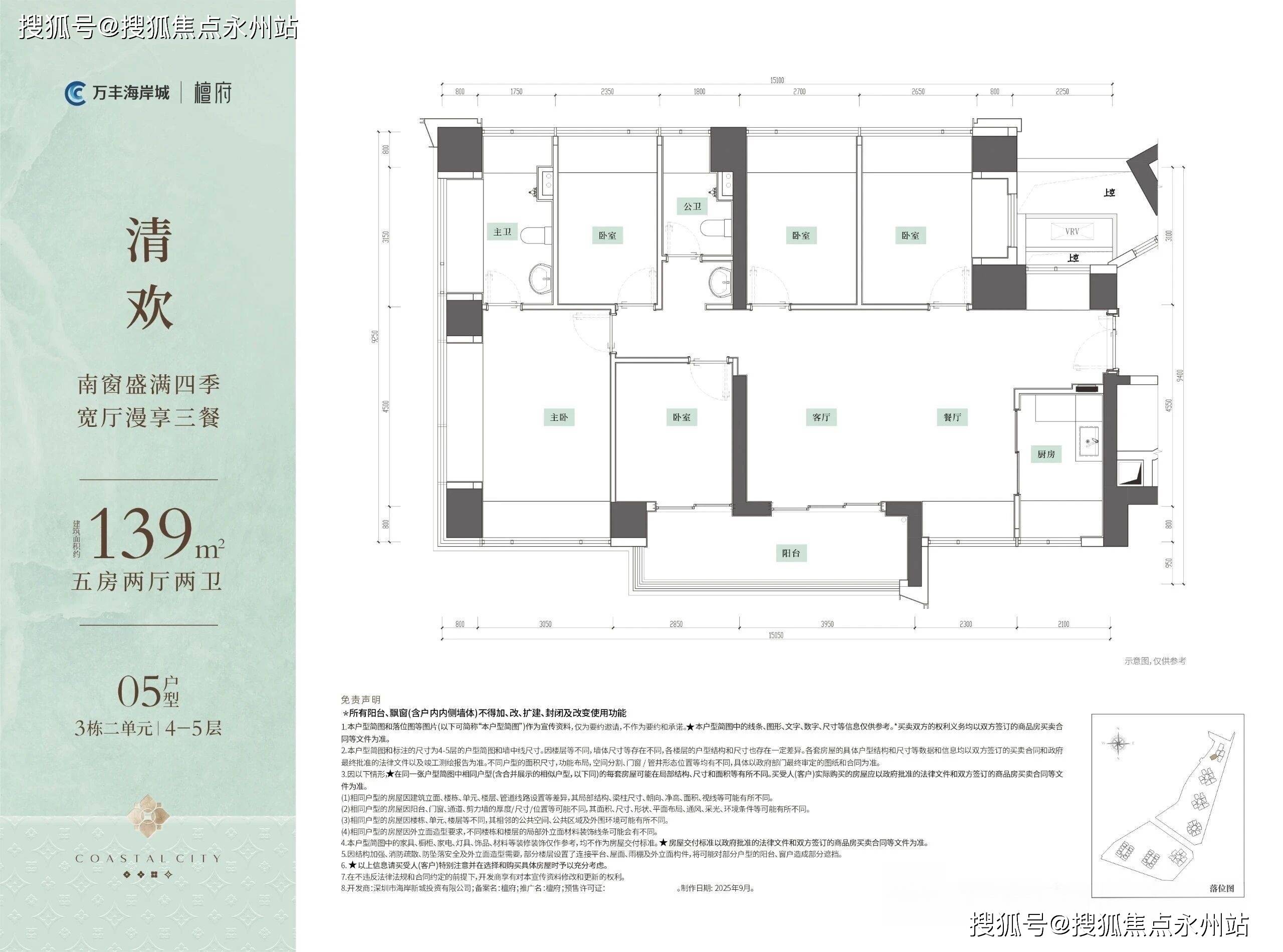 功能拓展:全南向布局,采光通风条件优越,户型方正,可满足多孩家庭或三代同堂需求。通过优化承重墙分布,实现五房灵活分区,赠送面积约14.69㎡。