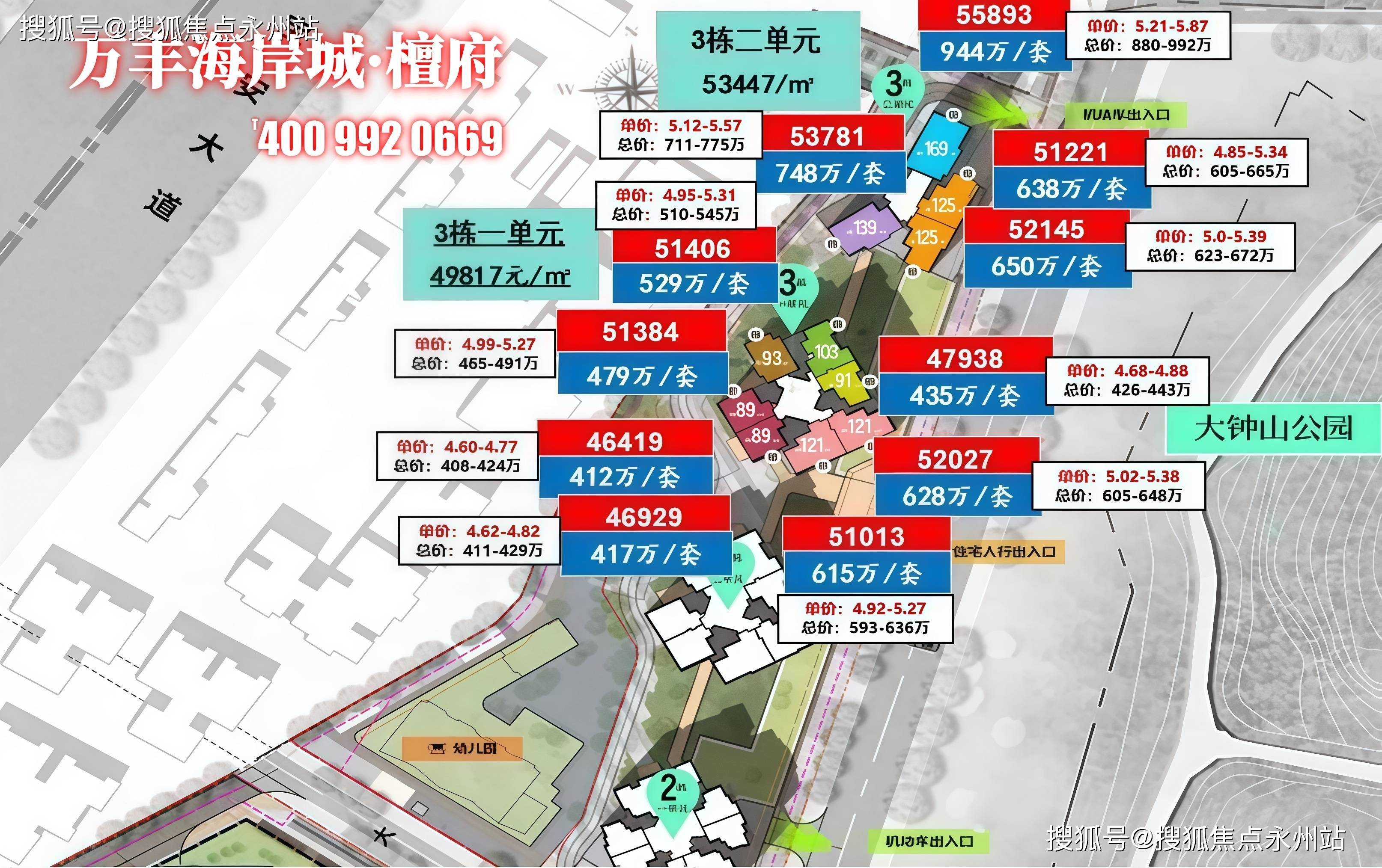 价格定位:折后均价约5.4万/㎡,总价区间640-737万,单价介于四房与六房之间,性价比突出。