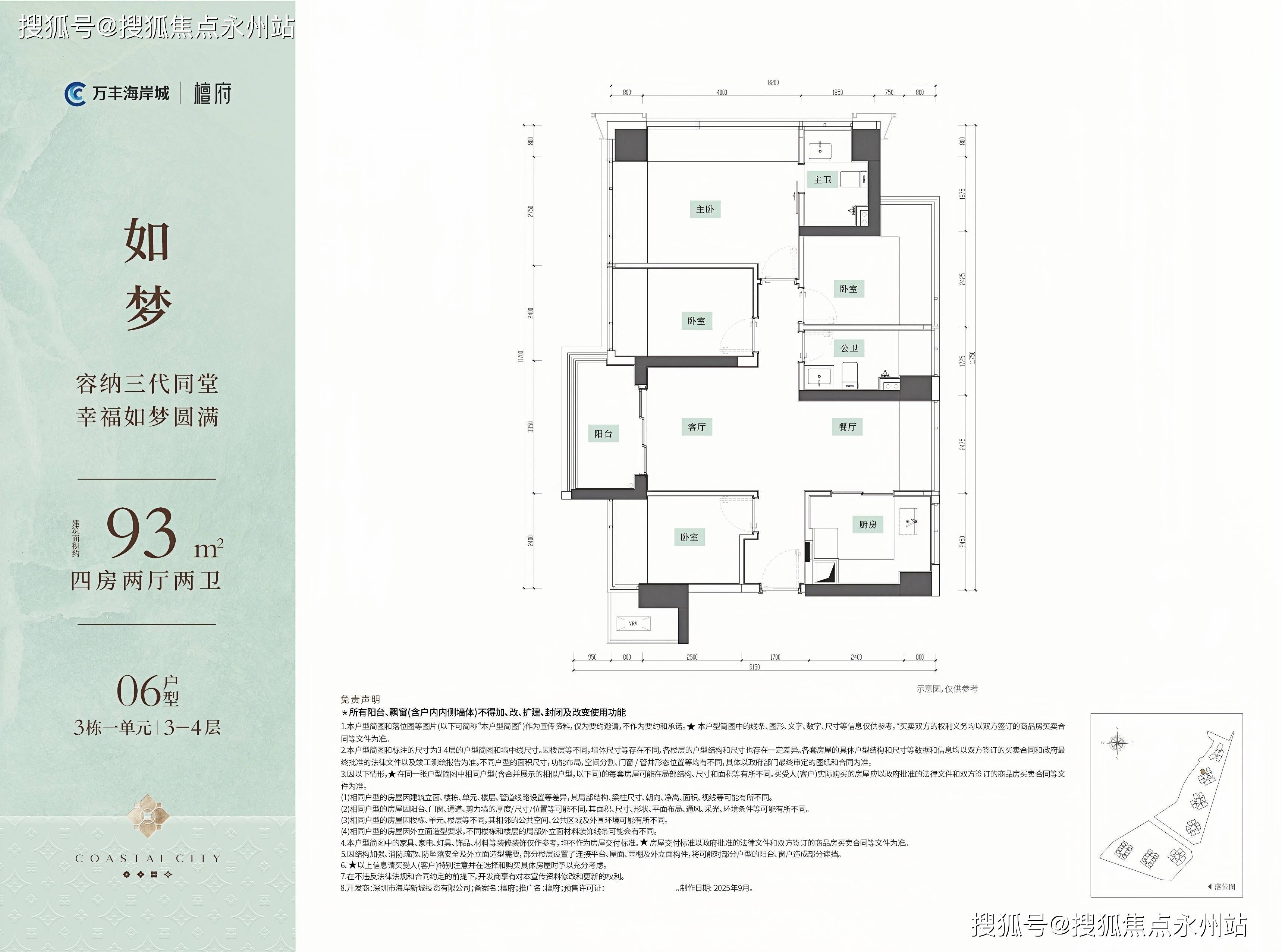 优惠政策:综合折扣力度达9.41折(诚意登记99折+认筹97折+认购98折叠加),折后均价约5.14万/㎡,单价区间4.57-5.87万/㎡。部分稀缺户型(如 93㎡四房)可享额外优惠,折算实际使用面积单价低至4.3万/㎡。