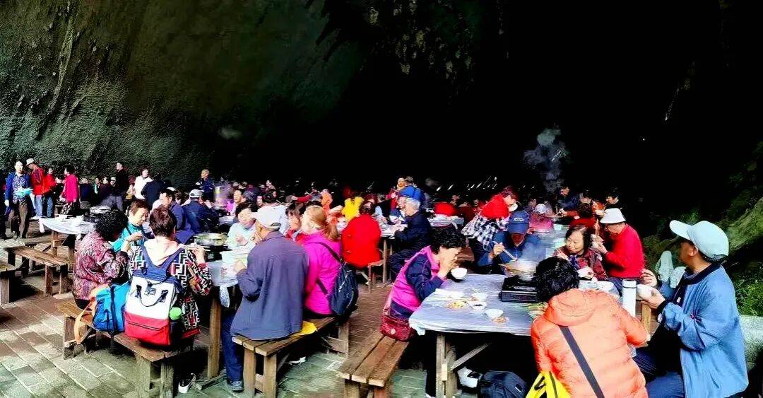 “在溶洞里吃火锅还是头一回,绥阳把旅游和饮食文化巧妙融合,新颖又独特,这种奇妙的感觉,让年味都变得格外特别!”来自铜仁的游客王华刚带着家人在天缘洞内大快朵颐,“我们玩了很多项目,像玻璃吊桥、漂流等年轻人特别喜欢,我更偏爱生态徒步路线,可以感受大自然的原生态。”