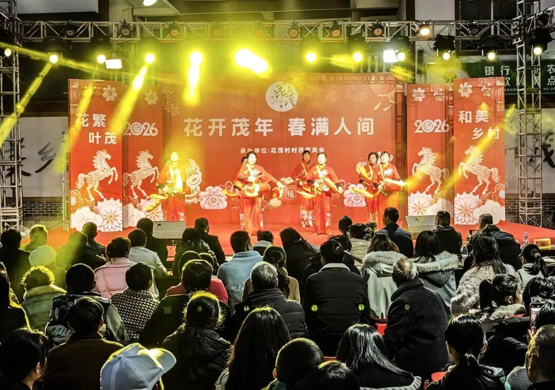 骏马迎春,万象更新。春节期间,枫香镇花茂村、枫元村、张村村精心筹备的“村晚”活动同步举行。三场活动由村支“两委”搭建平台、群众登台唱戏,为本地乡亲呈上了一场充满乡土气息、饱含真挚情感的新春文化盛宴。