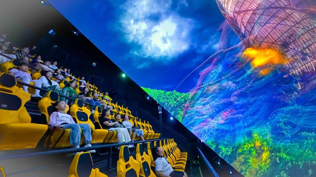 飞越赤水360°球幕影院更是人气爆棚,以《山海经》奇幻世界为核心,采用与《黑神话:悟空》同源的Unreal Engine 5引擎,超实时渲染技术还原丹霞地貌细节与神线D体感交互,风声、震动等真实触感同步袭来,实现视觉、听觉、触觉的全方位沉浸,让游客直呼震撼。