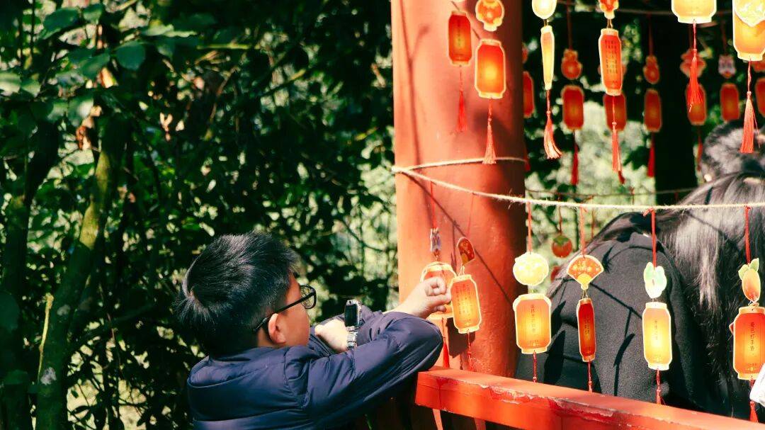 佛光岩六角亭的猜灯谜活动妙趣横生,莲花台的投壶游戏重拾传统雅趣,投中者的欢呼声响彻山谷。