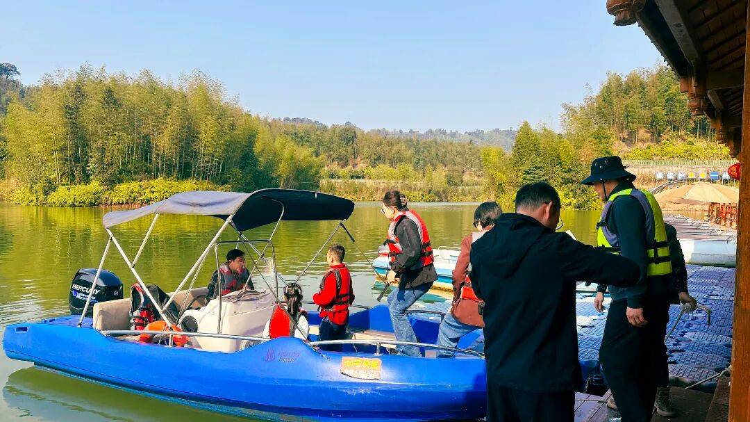 竹海快艇、竹筏等水上项目备受青睐,家庭游客在此尽享山水间的惬意时光,自然奇观与民俗雅韵碰撞出独特年味。