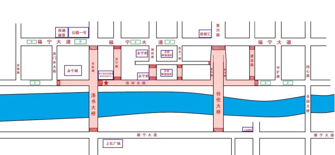 (一)2026年3月3日08:00起至13:00对:滨河路西门外大街路口东;洛书大桥南;滨河路长虹路口东;滨河路京宁路口北;滨河路翔梧路口北;滨河路西关一路路口北;滨河路建设路口北;滨河路建设路口东;福宁大道长虹路口南;福宁大道京宁路口南;福宁大道复兴路口南;福宁大道建设路口南进行交通管制。