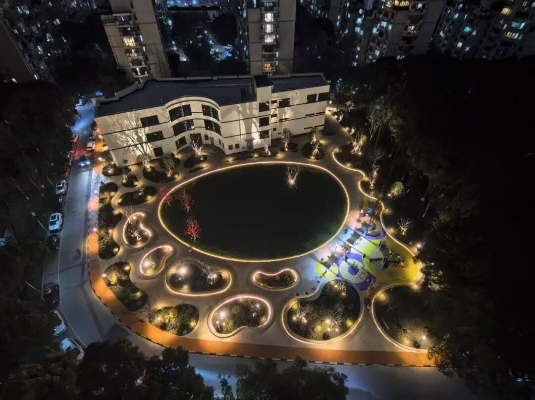 在设施配置上,则处处体现着全龄友好的理念。西南角的儿童游乐区和健身区,既有适合孩童攀爬嬉戏的组合滑梯、秋千,也涵盖力量训练、有氧训练等多种功能的新型智能健身器械,器材选用环保耐用的材质,部分还带有缓冲设计,最大限度保障使用者的安全。