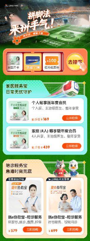 从健康好物到中医咨询,平安好医生的守护不止于场外。球迷通过场内外太阳码,进入平安“苏超”康康宝专属线上页面,即可了解家庭医生线上问诊、线下就医陪诊服务、专业运动康复等定制化健康服务方案。