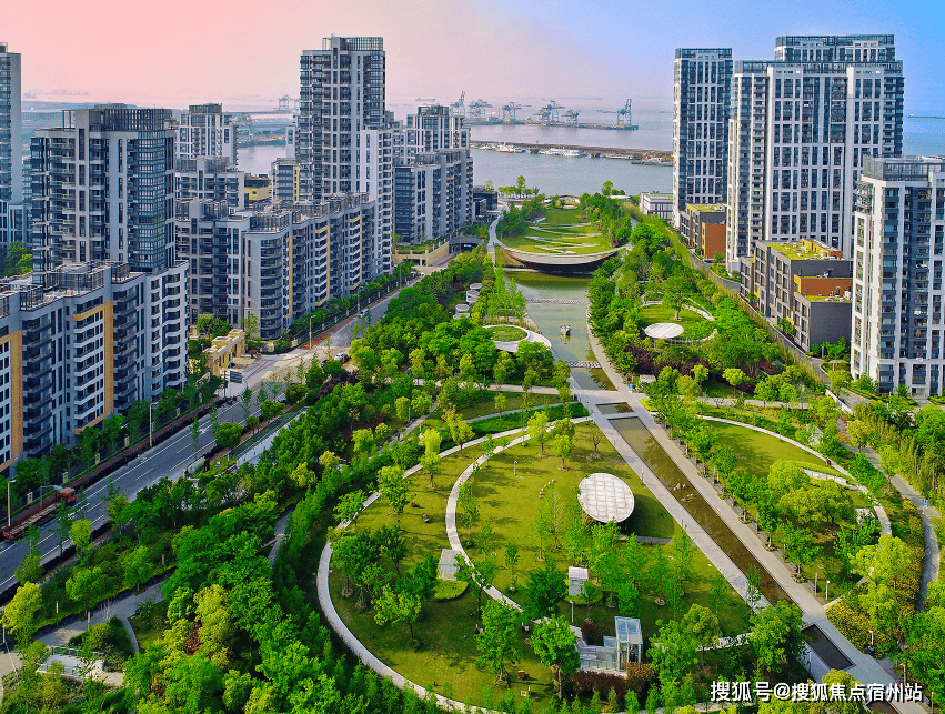 四大主题公园,以及若干个广场和开放性的滨江大道。社区内水系纵横,步道蜿蜒,营造出移步换景的生态体验。